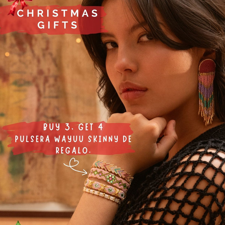 compra mínimo 3 pulseras y recibe tu Wayuu skinny extra de regalo.