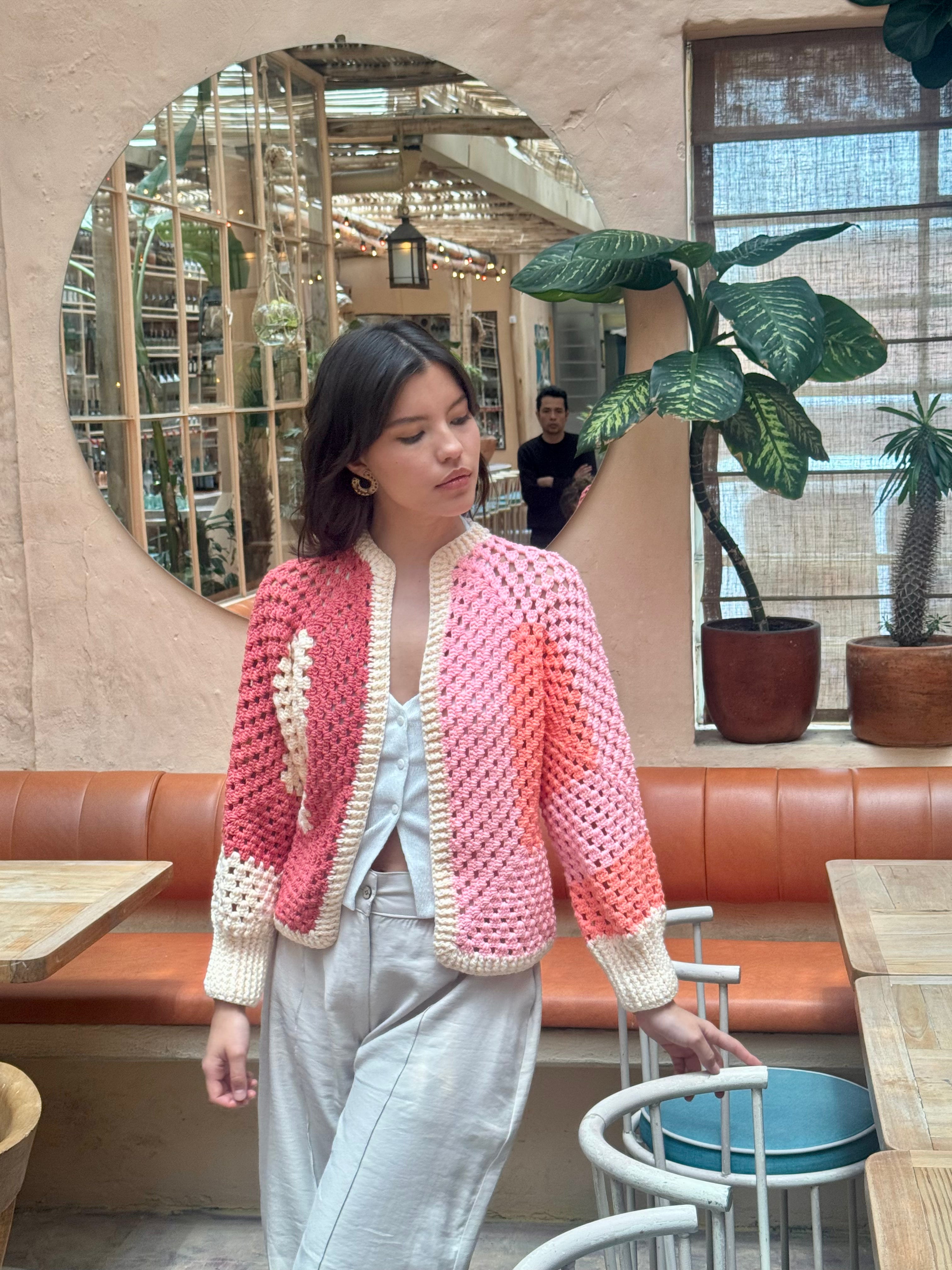 Rose es una prenda única, tejida a mano con dedicación y detalle por artesanos expertos. Su diseño destaca por los colores vibrantes y las texturas que abrazan, reflejando la esencia de lo hecho con alma.