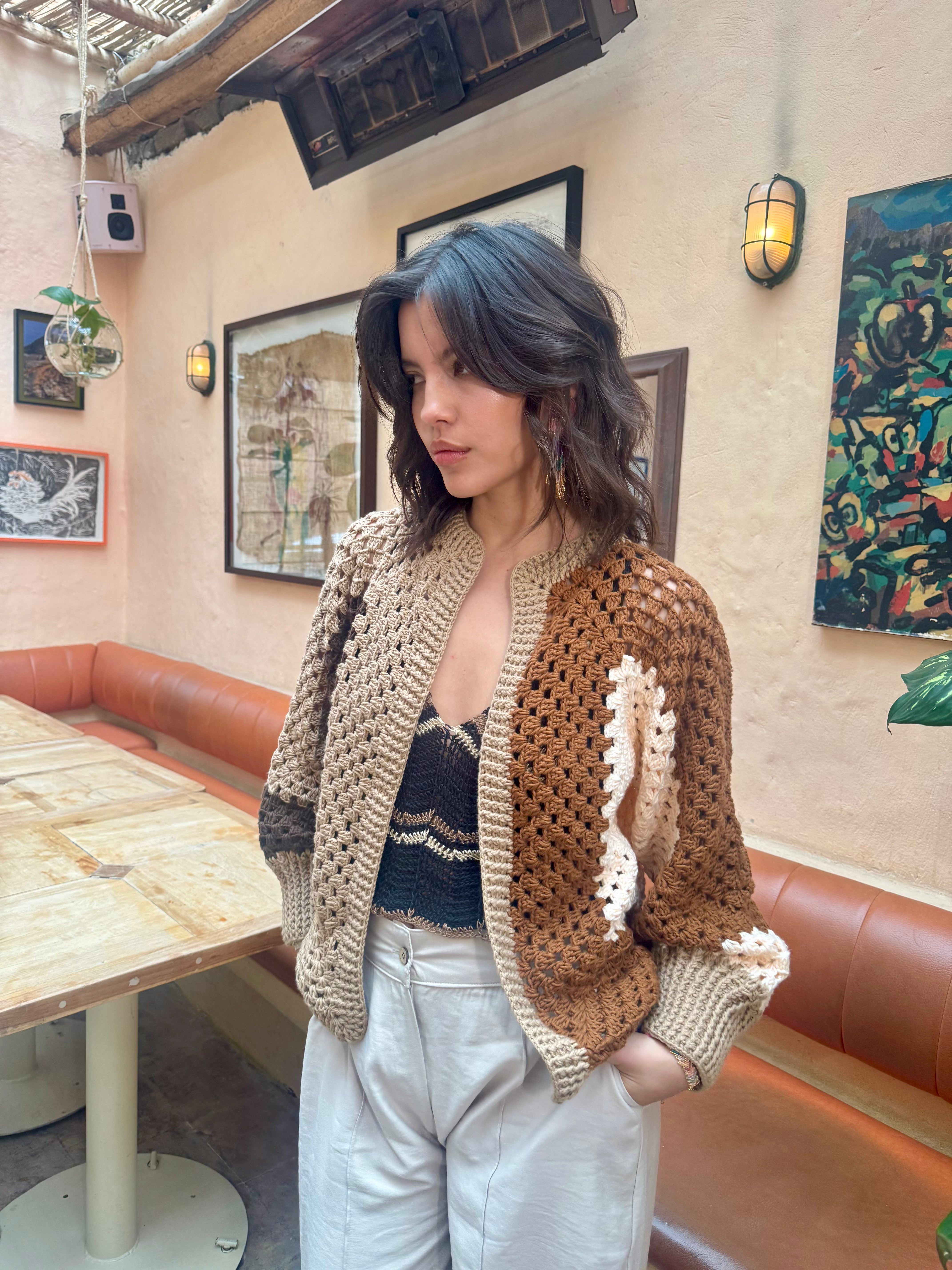 Camel es una prenda única, tejida a mano con dedicación y detalle por artesanos expertos. Su diseño destaca por los colores vibrantes y las texturas que abrazan, reflejando la esencia de lo hecho con alma.