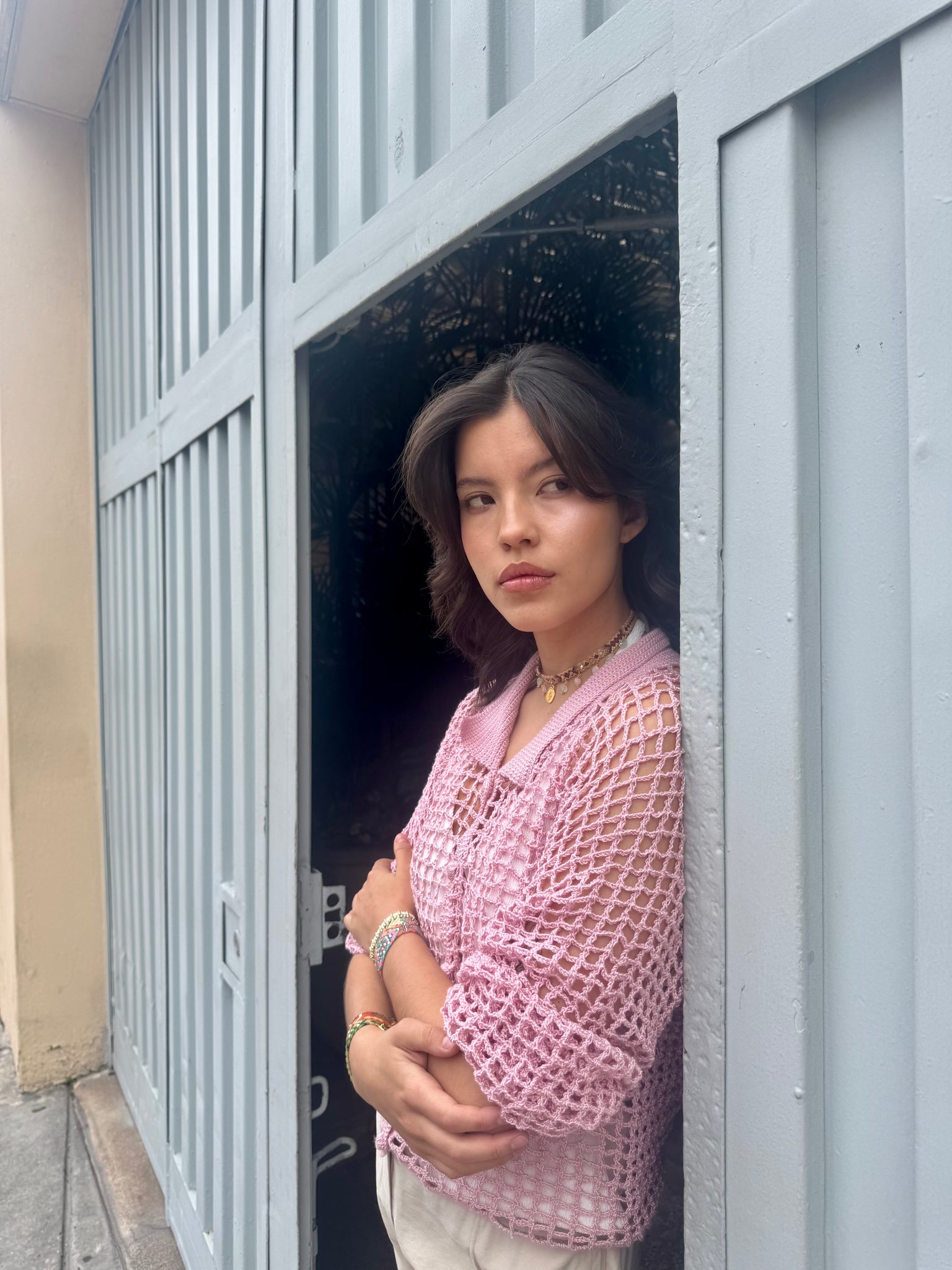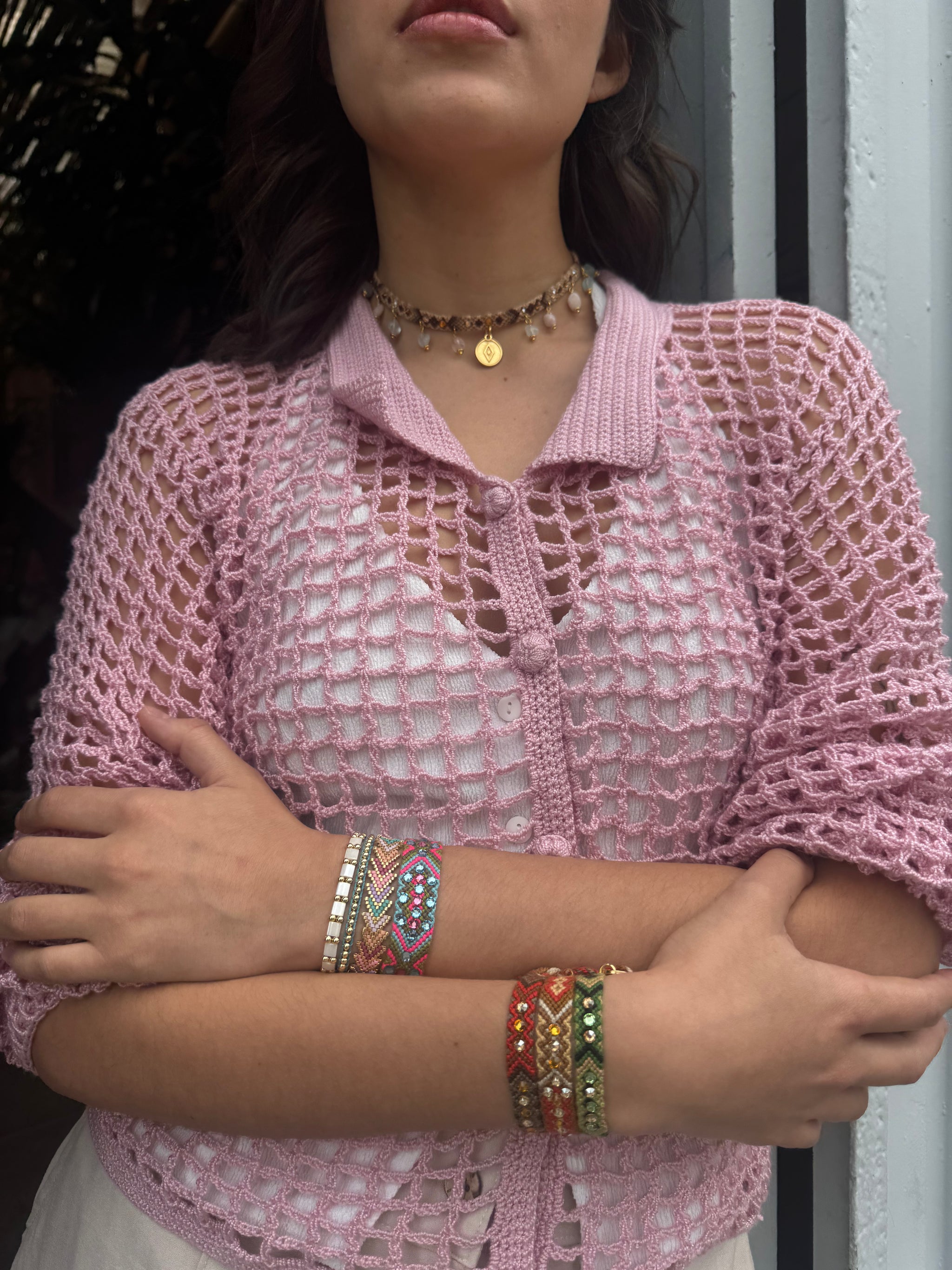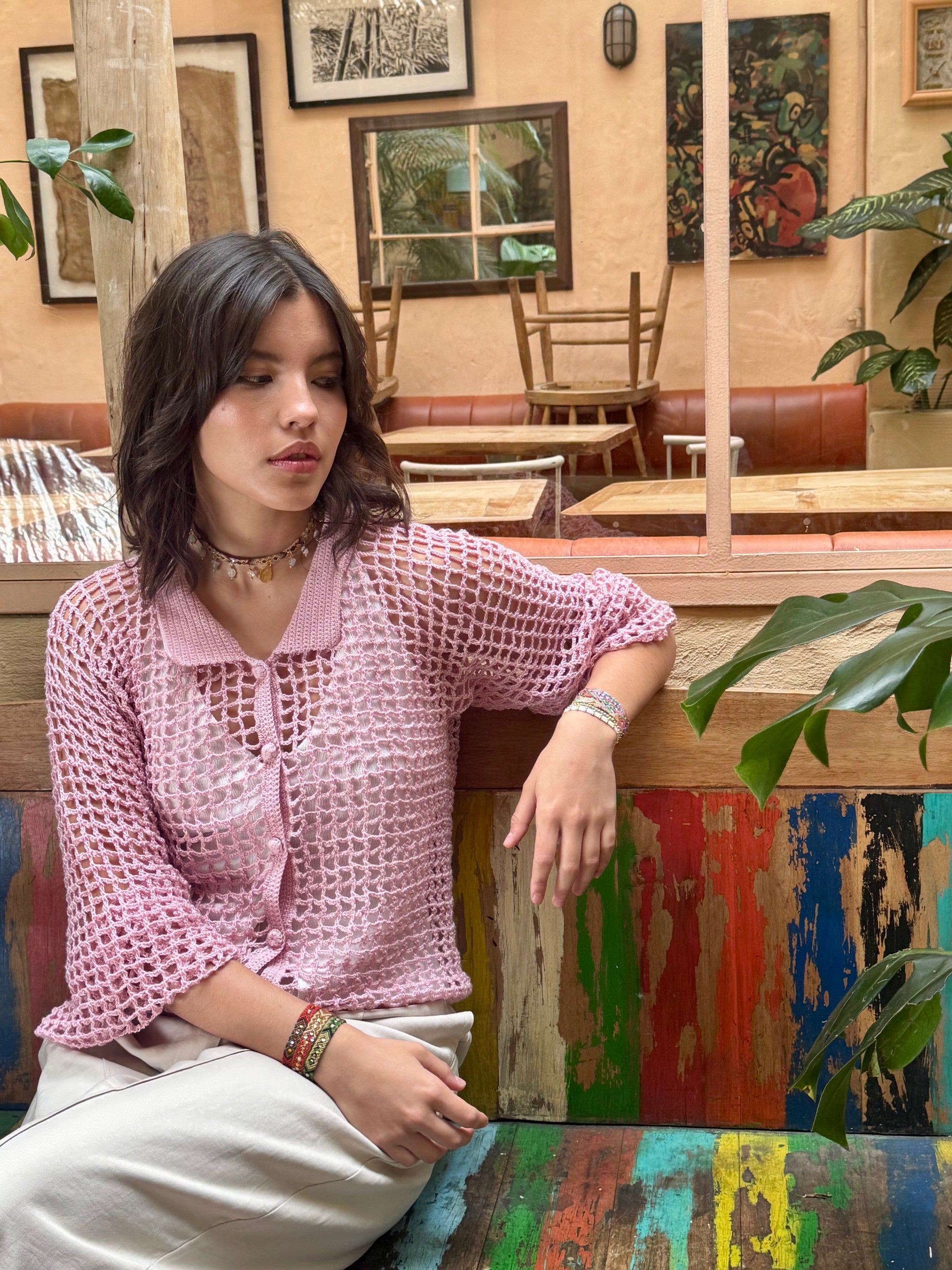Confeccionada a mano con amor y dedicación por artesanos expertos, la camisa Almara combina la textura única del crochet con un diseño sofisticado y auténtico.