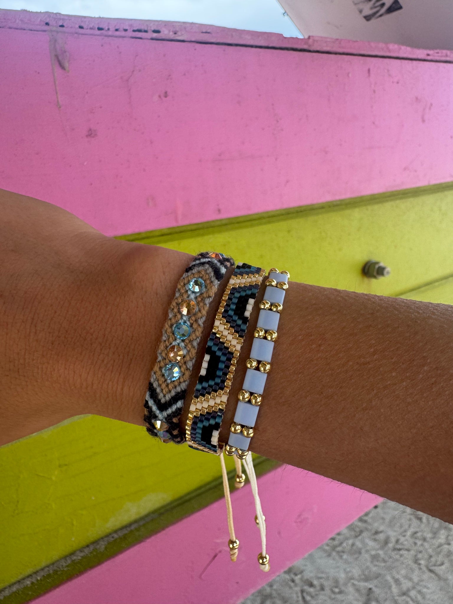 - Pulsera tejida con cristales Miyuki y cierre ajustable.