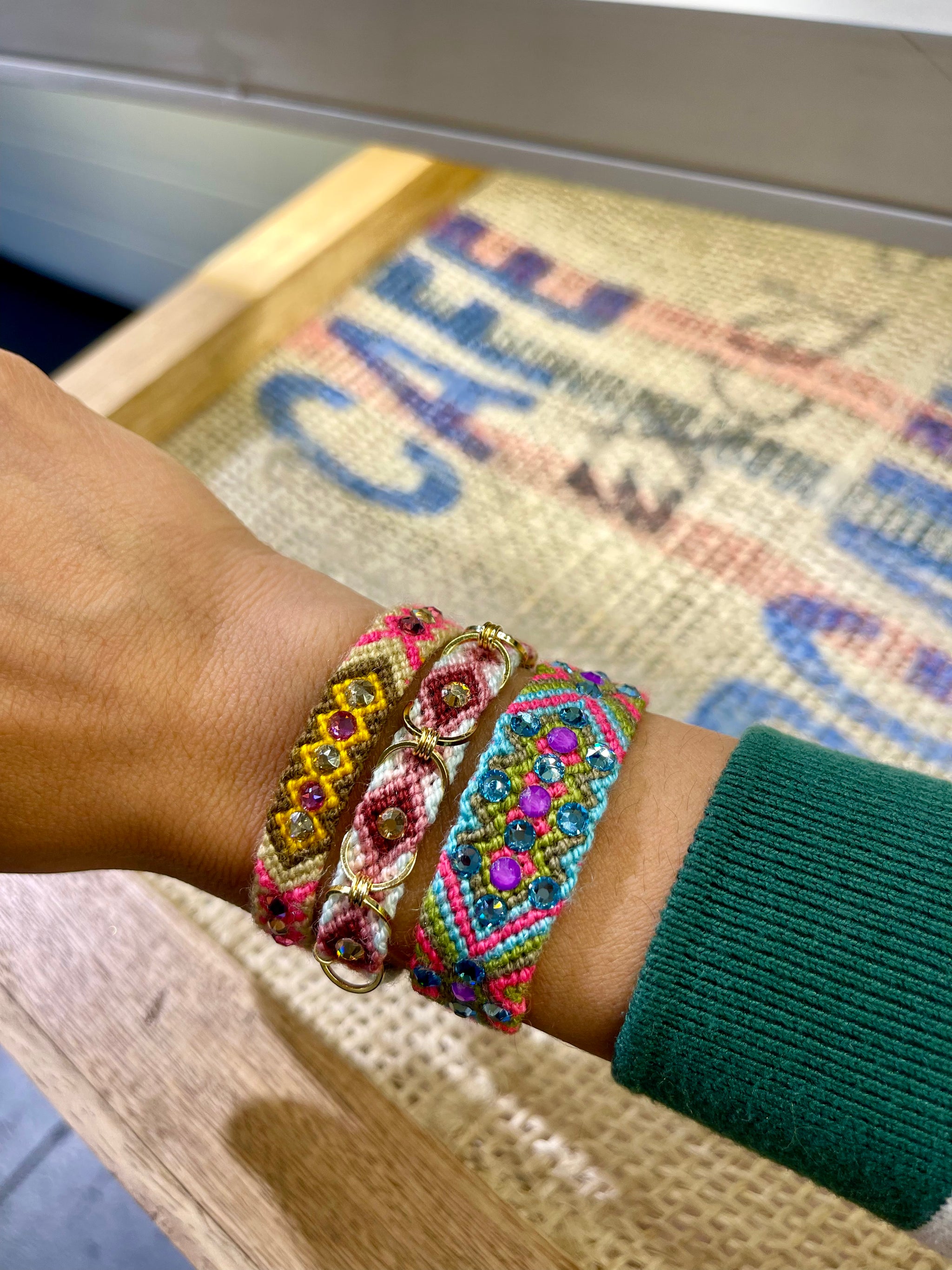 Pulsera Wayuu con cristales Swarovski, tejida a mano