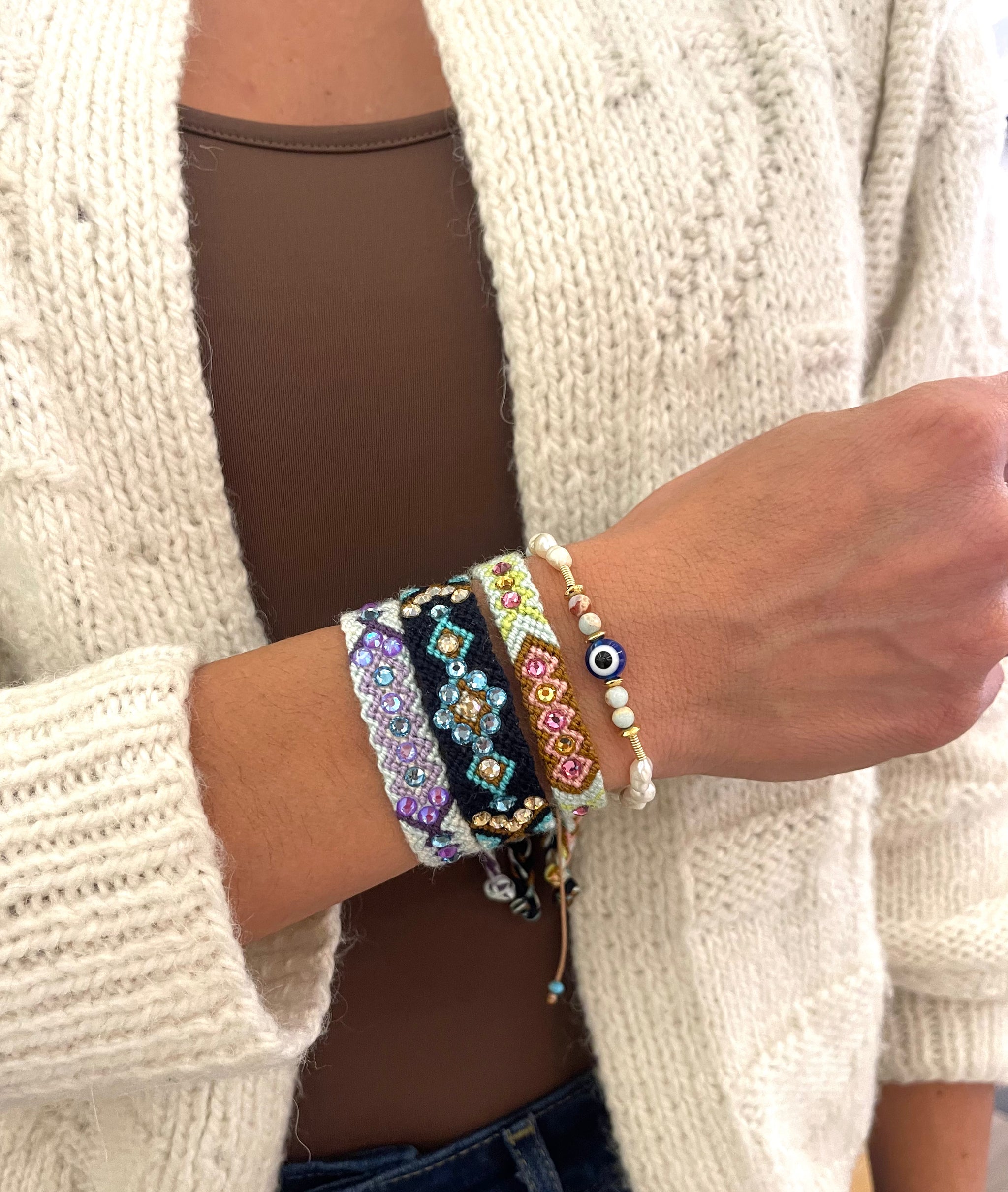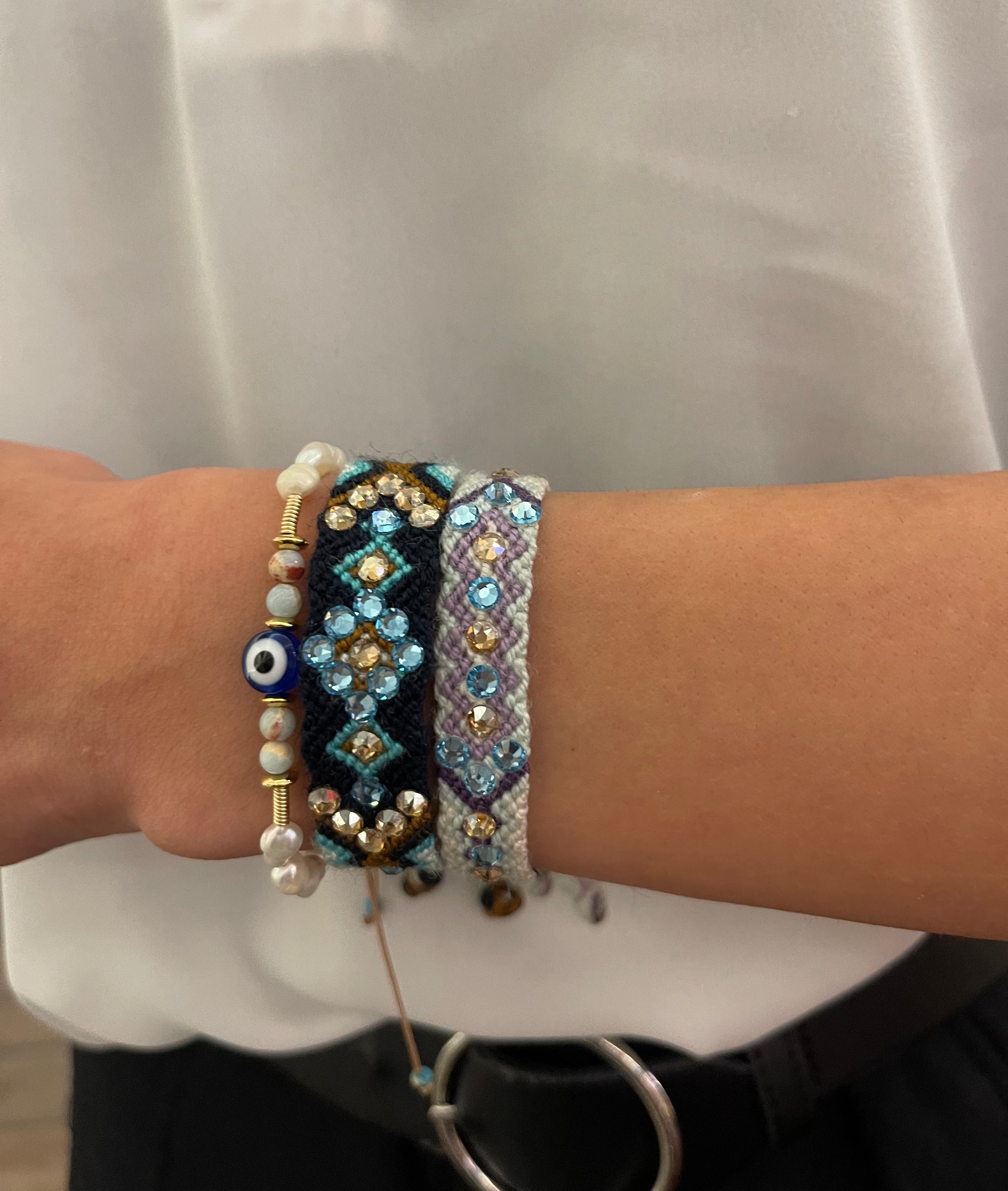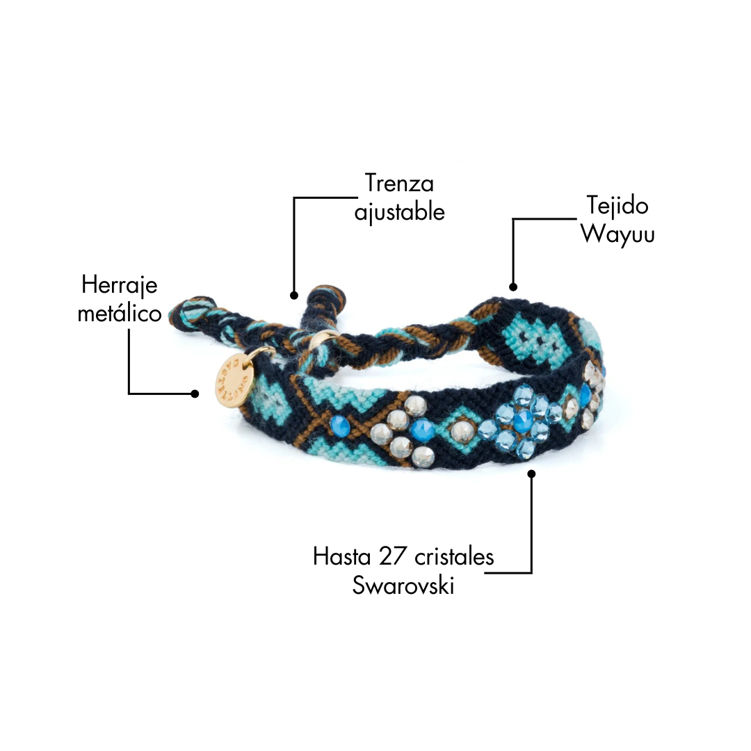 Pulsera Wayuu con cristales Swarovski, tejida a mano