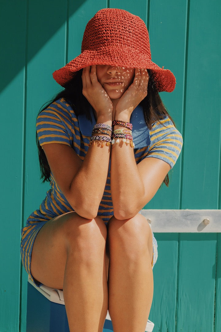 Inspirados en la cultura Wayuu, creamos símbolos con significado profundo. Nuestra pulsera Wayuu Kalepsu toma su nombre del Kanaas “Kalepsu”, que representa los ganchos usados para colgar objetos del techo, un elemento lleno de tradición.