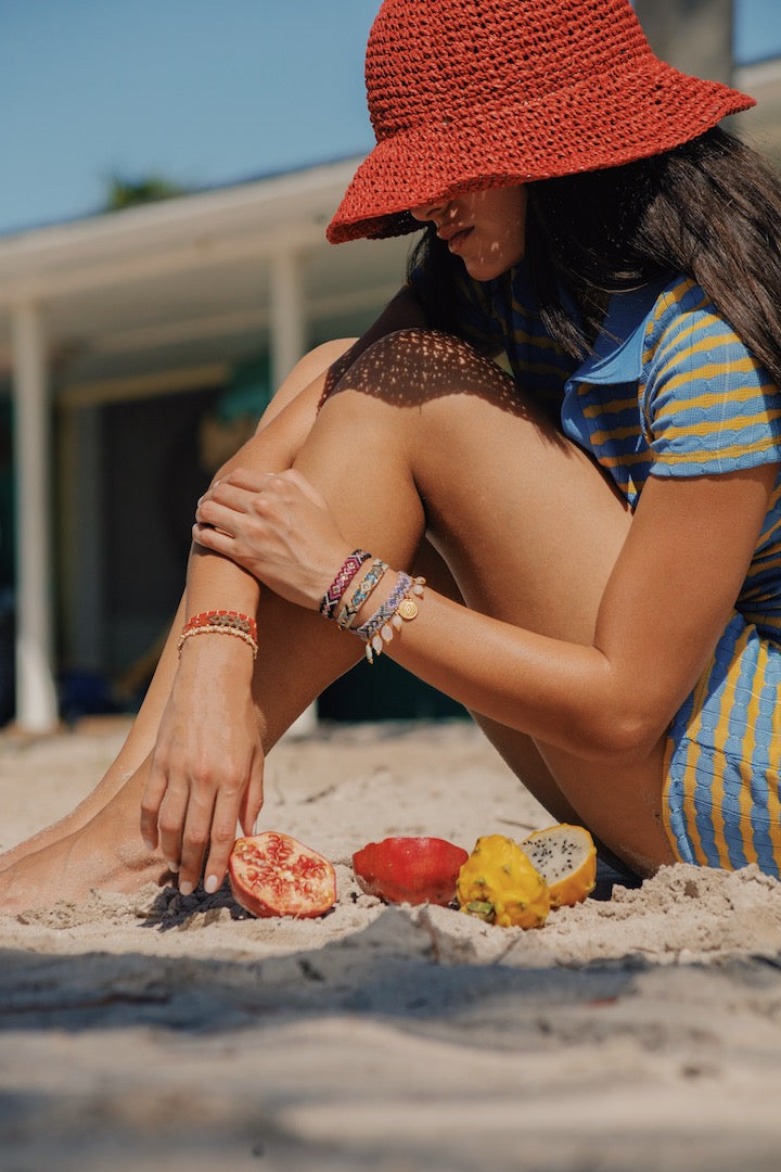 Inspirados en la cultura Wayuu, creamos símbolos con significado profundo. Nuestra pulsera Wayuu Kalepsu toma su nombre del Kanaas “Kalepsu”, que representa los ganchos usados para colgar objetos del techo, un elemento lleno de tradición.