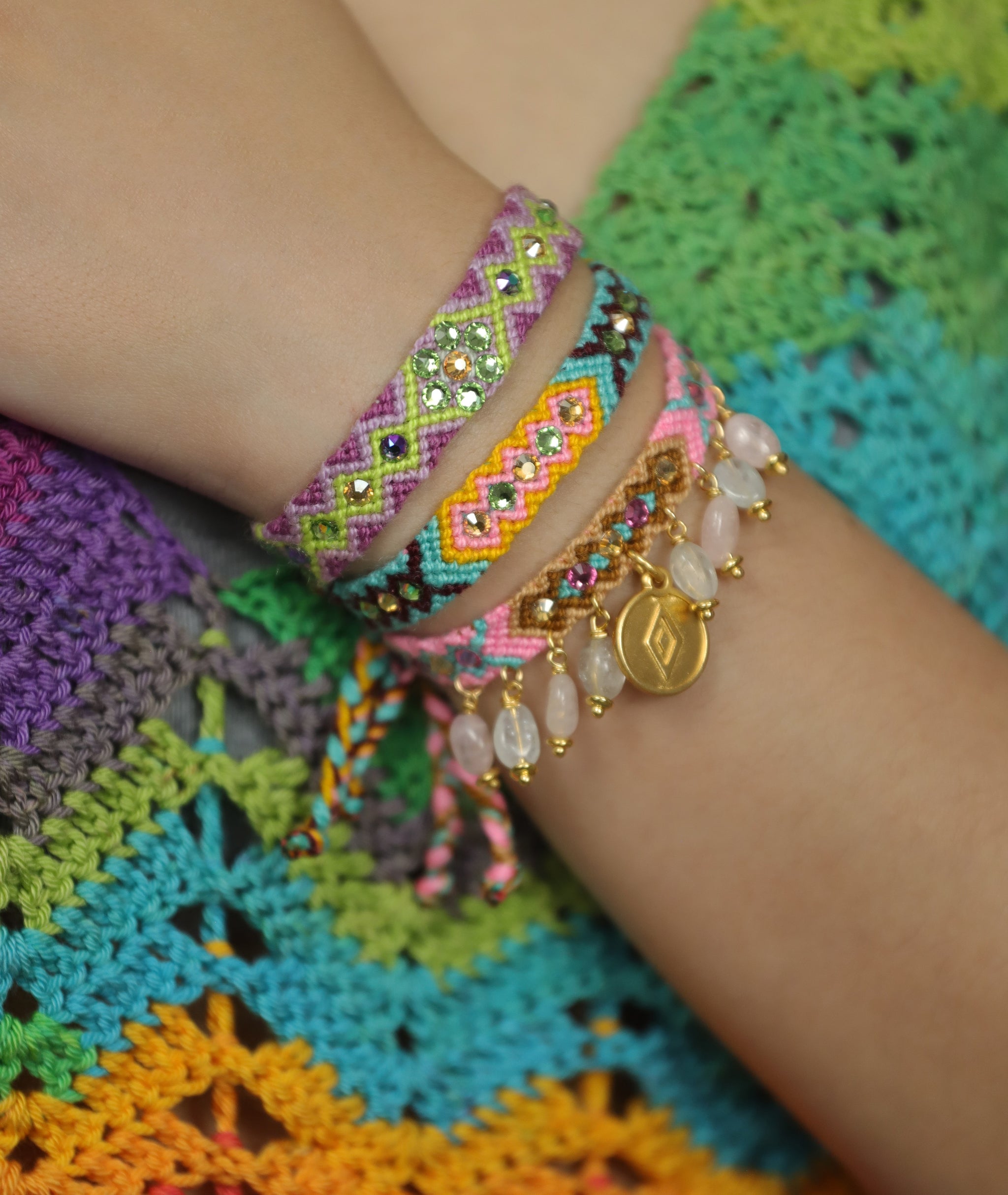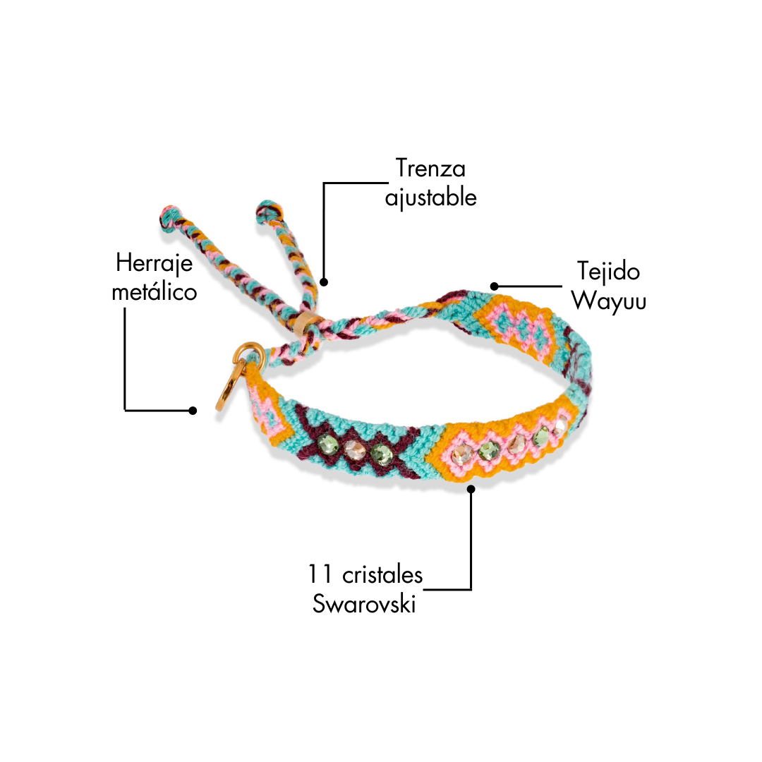 Pulsera Wayuu con cristales Swarovski, tejida a mano.