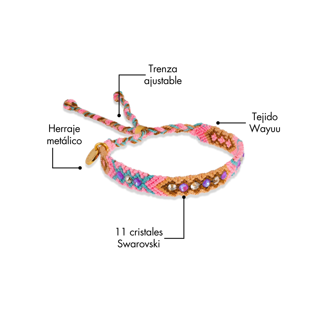 Pulsera Wayuu con cristales Swarovski, tejida a mano.