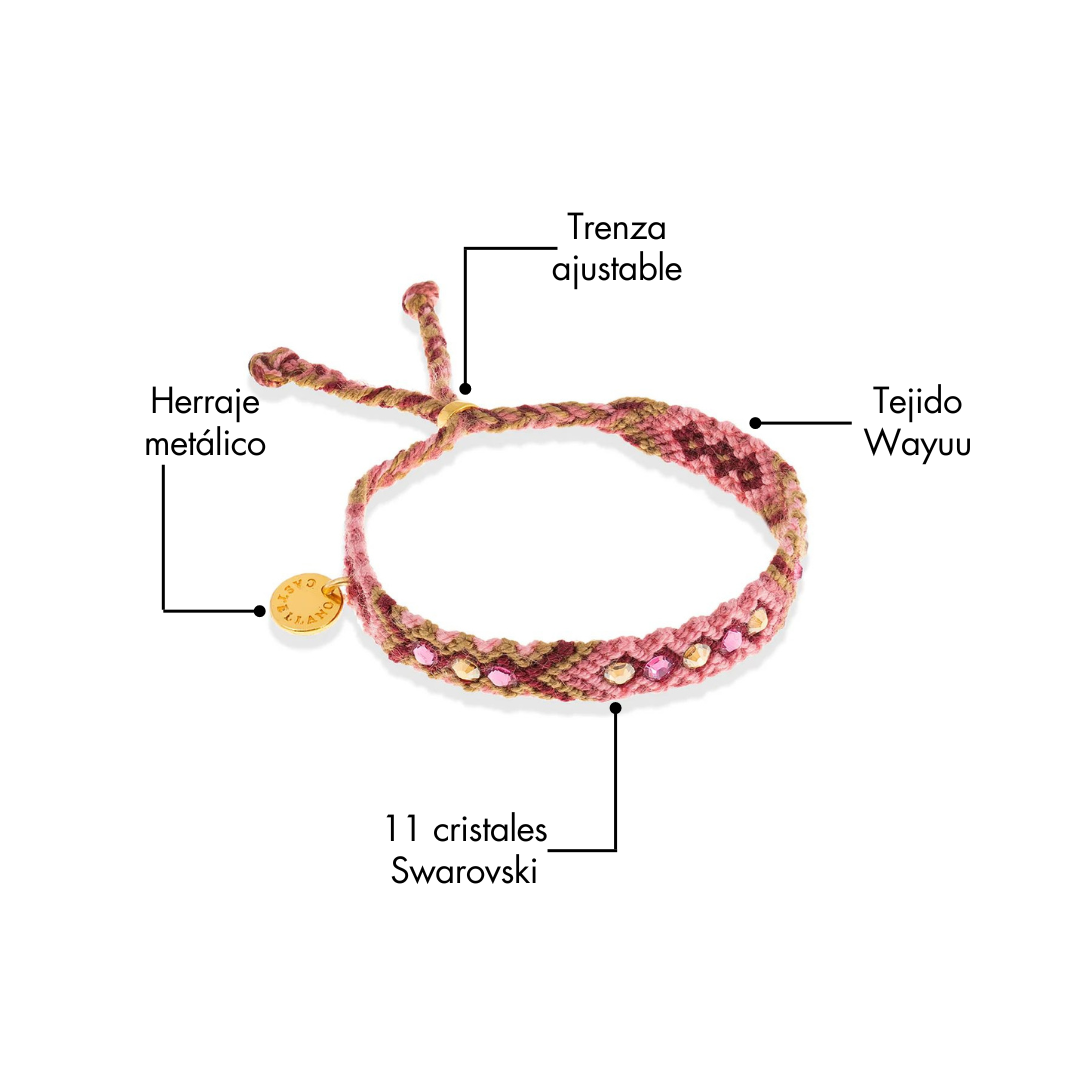 Pulsera Wayuu con cristales Swarovski, tejida a mano.