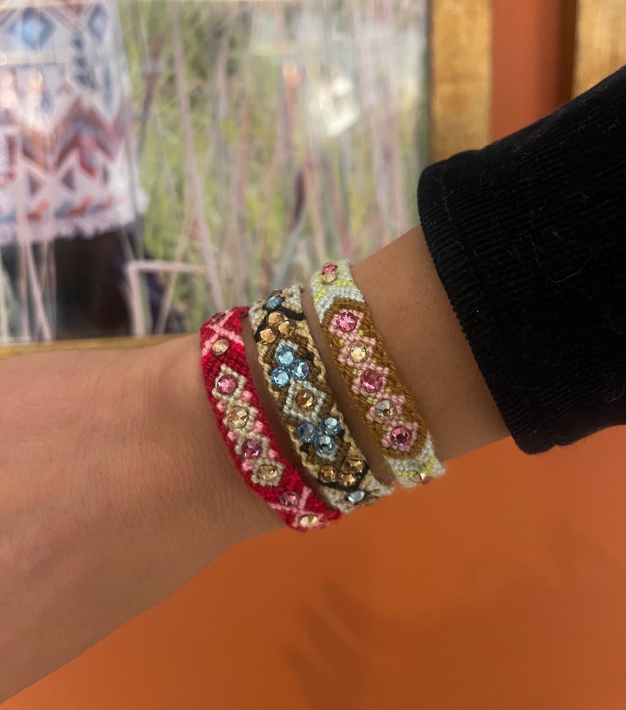 Pulsera Wayuu con cristales Swarovski, tejida a mano.
