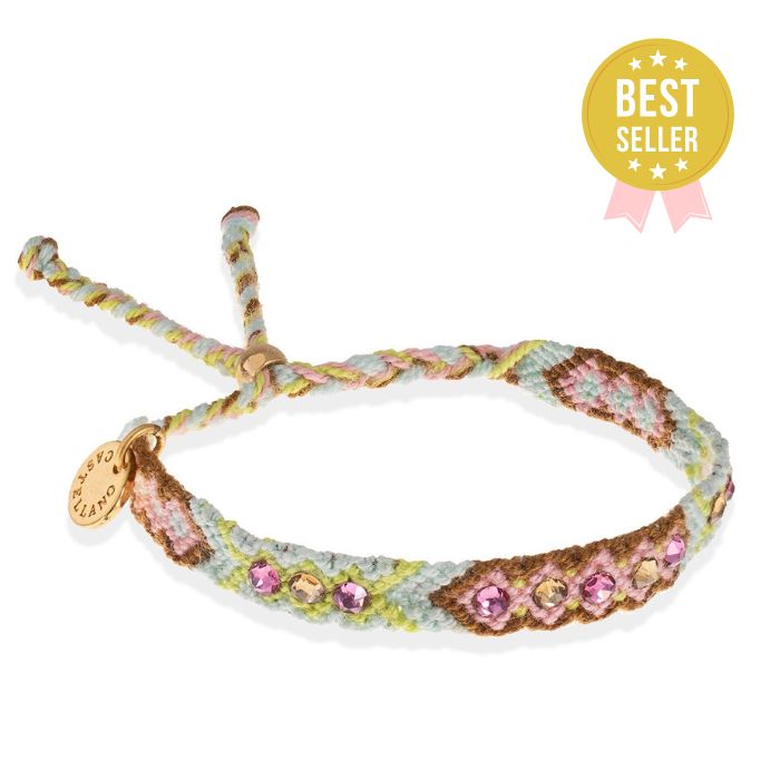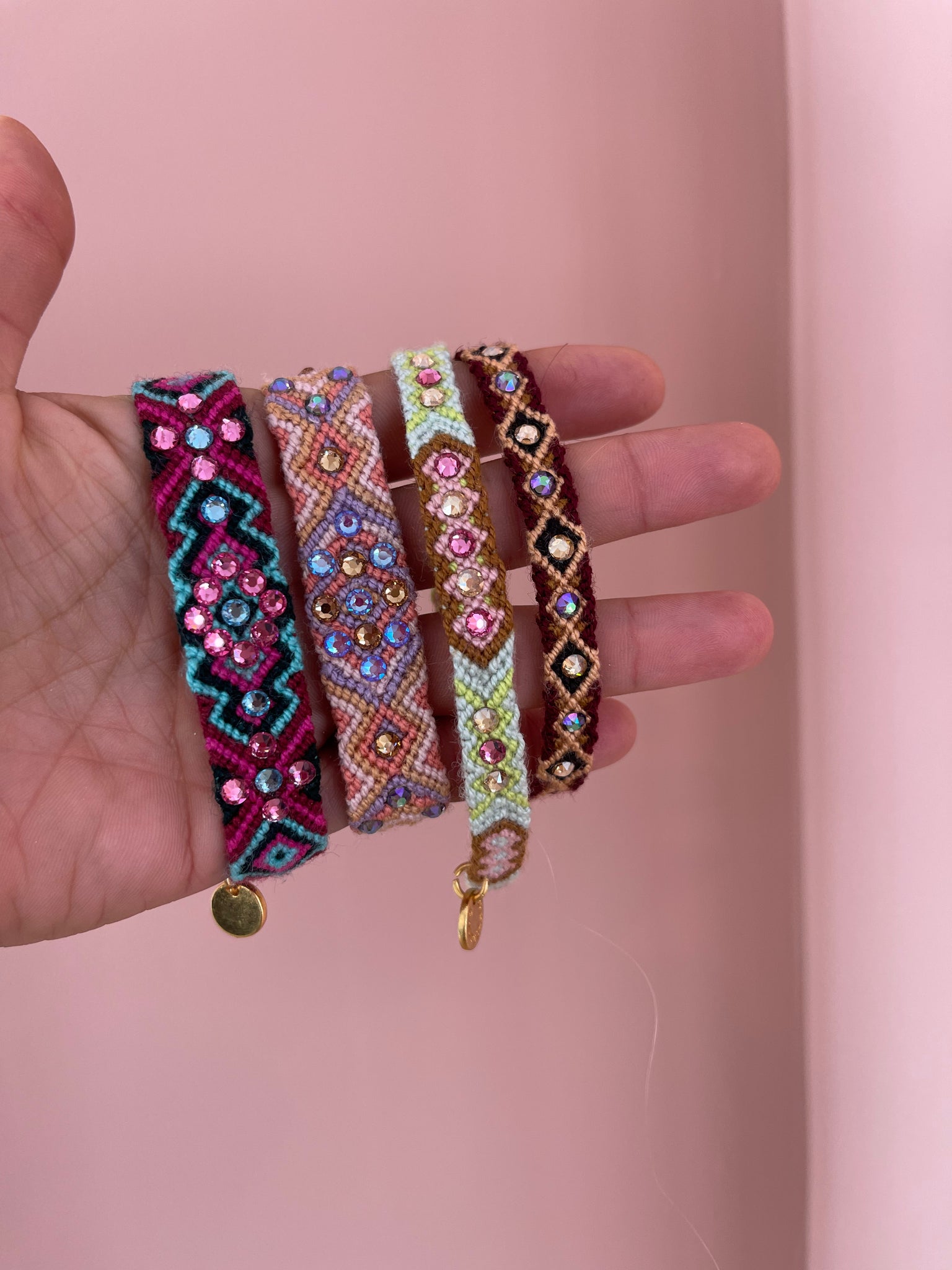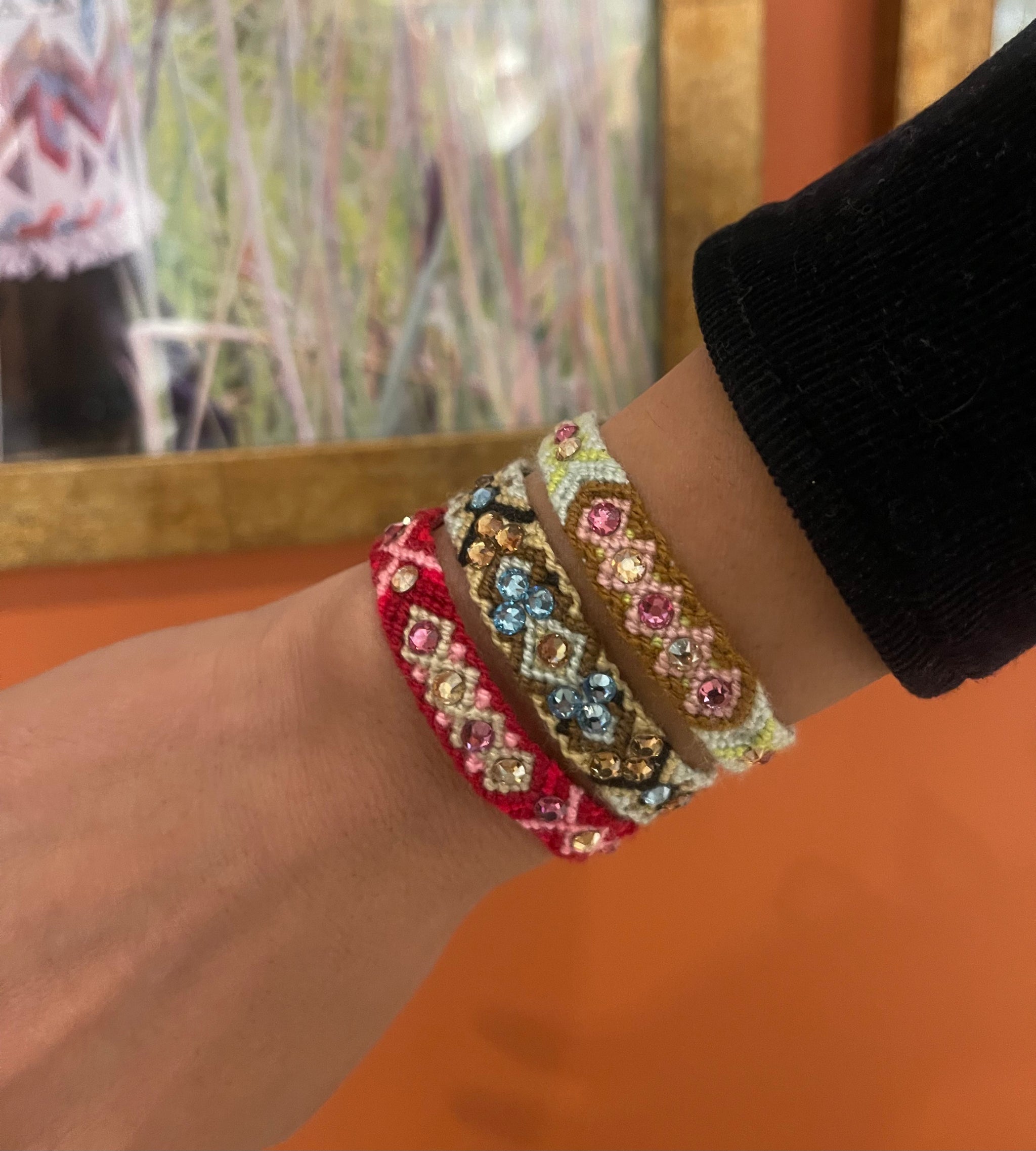 Pulsera Wayuu con cristales Swarovski, tejida a mano.