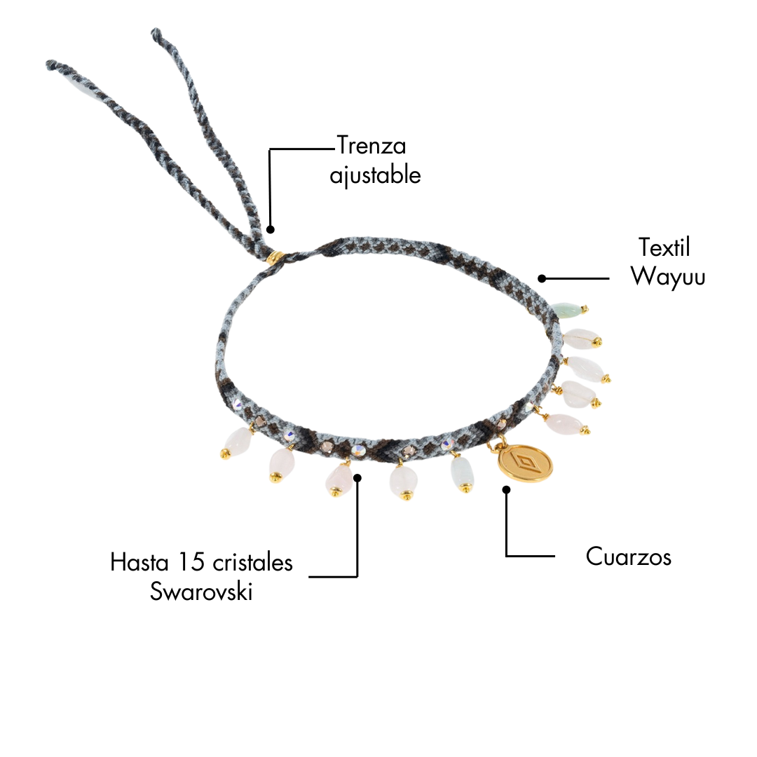 • Choker elaborado a mano con cristales Swarovski y cuarzos naturales.