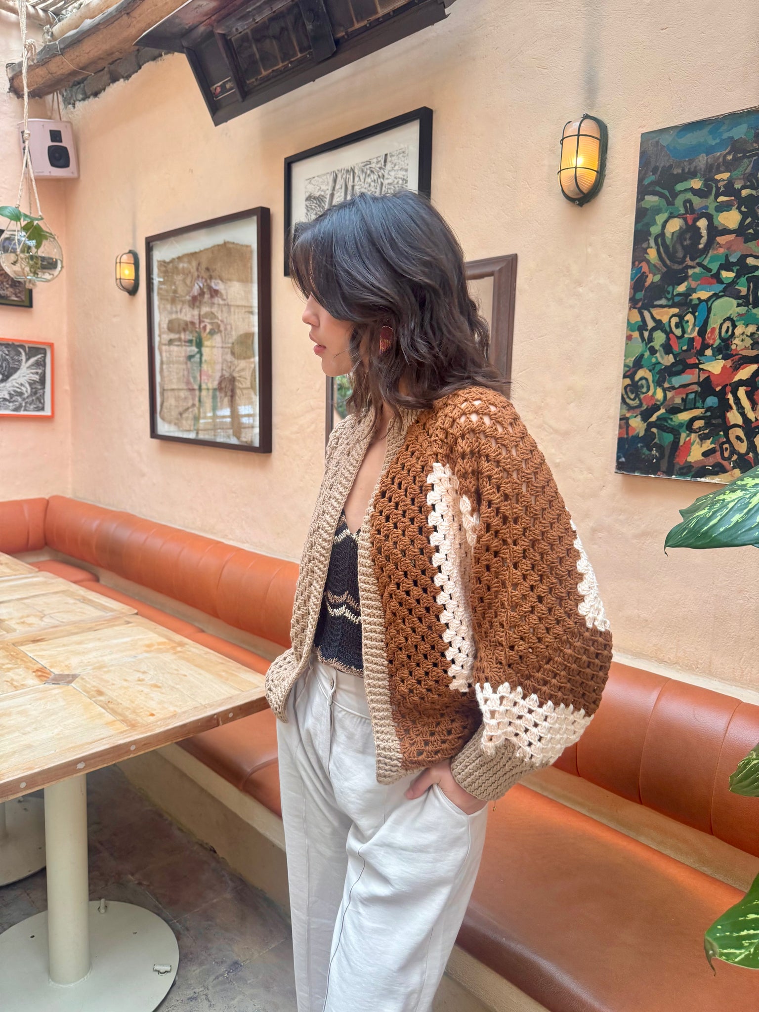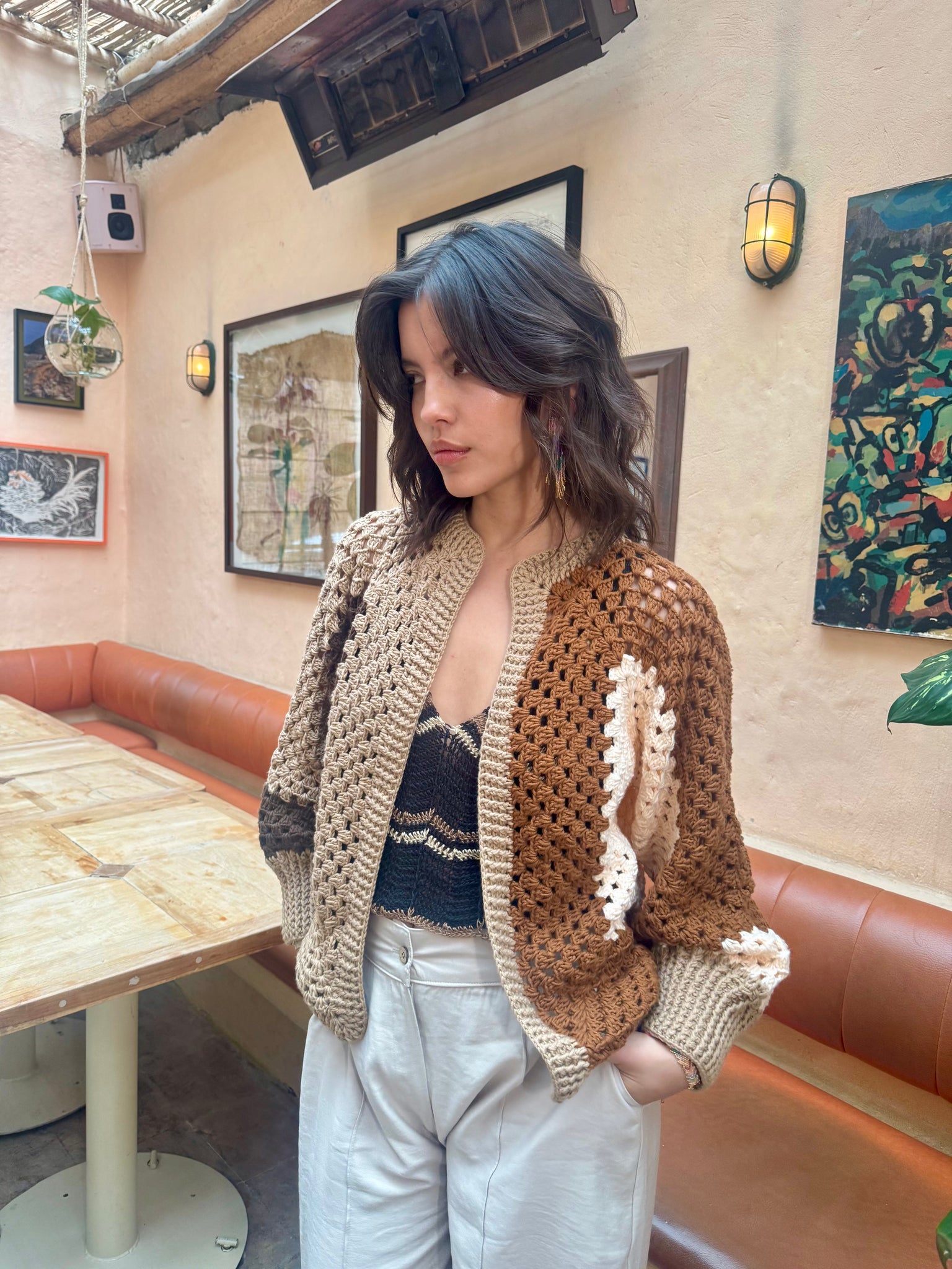Cárdigan Camel Tejido a Mano