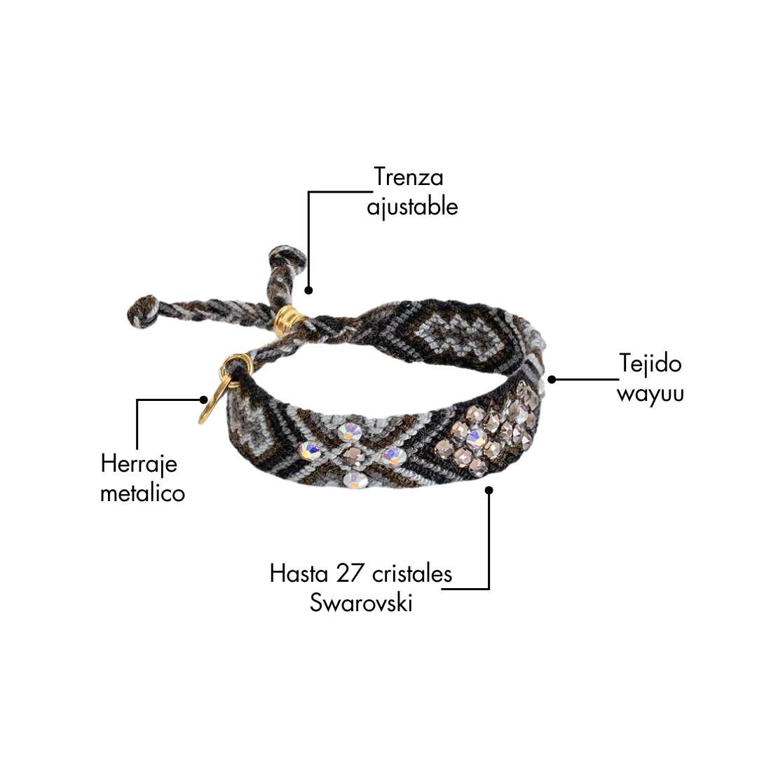 Pulsera Wayuu con cristales Swarovski, tejida a mano