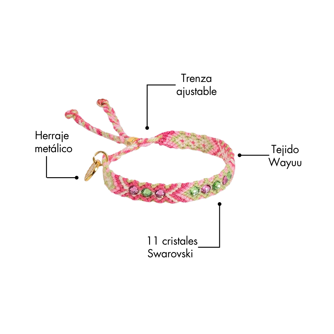 Pulsera Wayuu con cristales Swarovski, tejida a mano.